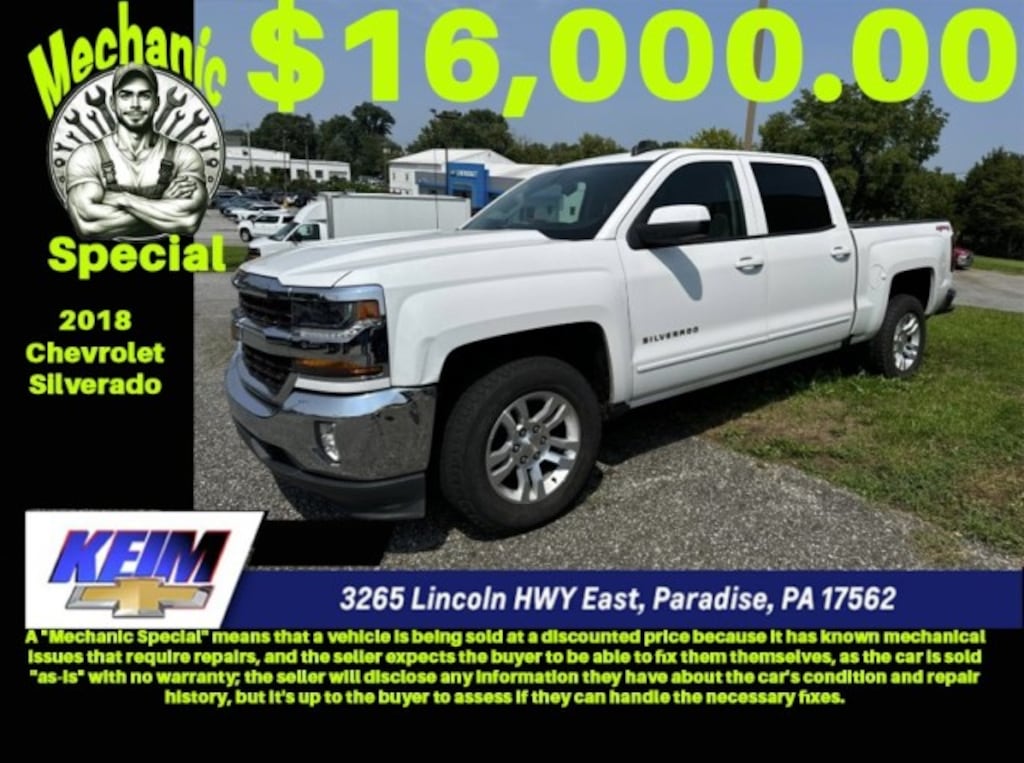Contact Keim Chevrolet today for information on dozens of vehicles like this 2018 Chevrolet Silverado 1500 LT. This Chevrolet Silverado 1500 LT is for the discerning driver who demands the utmost of his vehicle. Equipped with 4WD, this Chevrolet Silverado 1500 LT gives you added confidence to tackle the surface of any path you take. Based on the superb condition of this vehicle, along with the options and color, this Chevrolet Silverado 1500 LT is sure to sell fast. You've found the one you've been looking for. Your dream car.